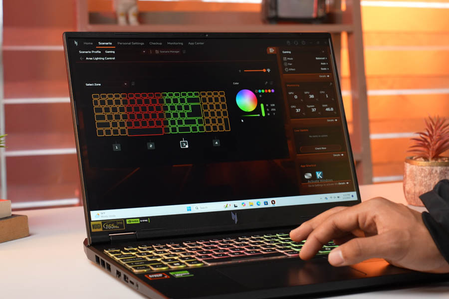 Being a step above Acer's entry-line Nitro 'V' series of gaming laptops means the Nitro 16 enjoys additional perks like multicolor RGB. Its chicklet keyboard features 4 zones that you can customize via the 'NitroSense' application with a bunch of presets and surprisingly nice customizability.