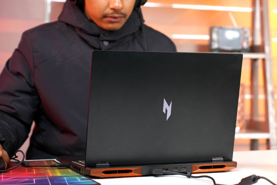 It's an aggressive gamery machine built entirely out of plastic to deliver maximum FPS for your dollar (or rupee). Seeing a cleaner lid had me hopeful for some extra stealth points but those orange accents are conspicuous as heck. As such, this Nitro (just like its brethren before) might not be the best piece of technology to bring into a business meeting or conference. But I'll happily rock it in any of my uni classes or show it off at my home rig! Overall build and feel is nothing special with plastic all six yards (the bottom one feels especially bland) and a little bit of flex along the way.