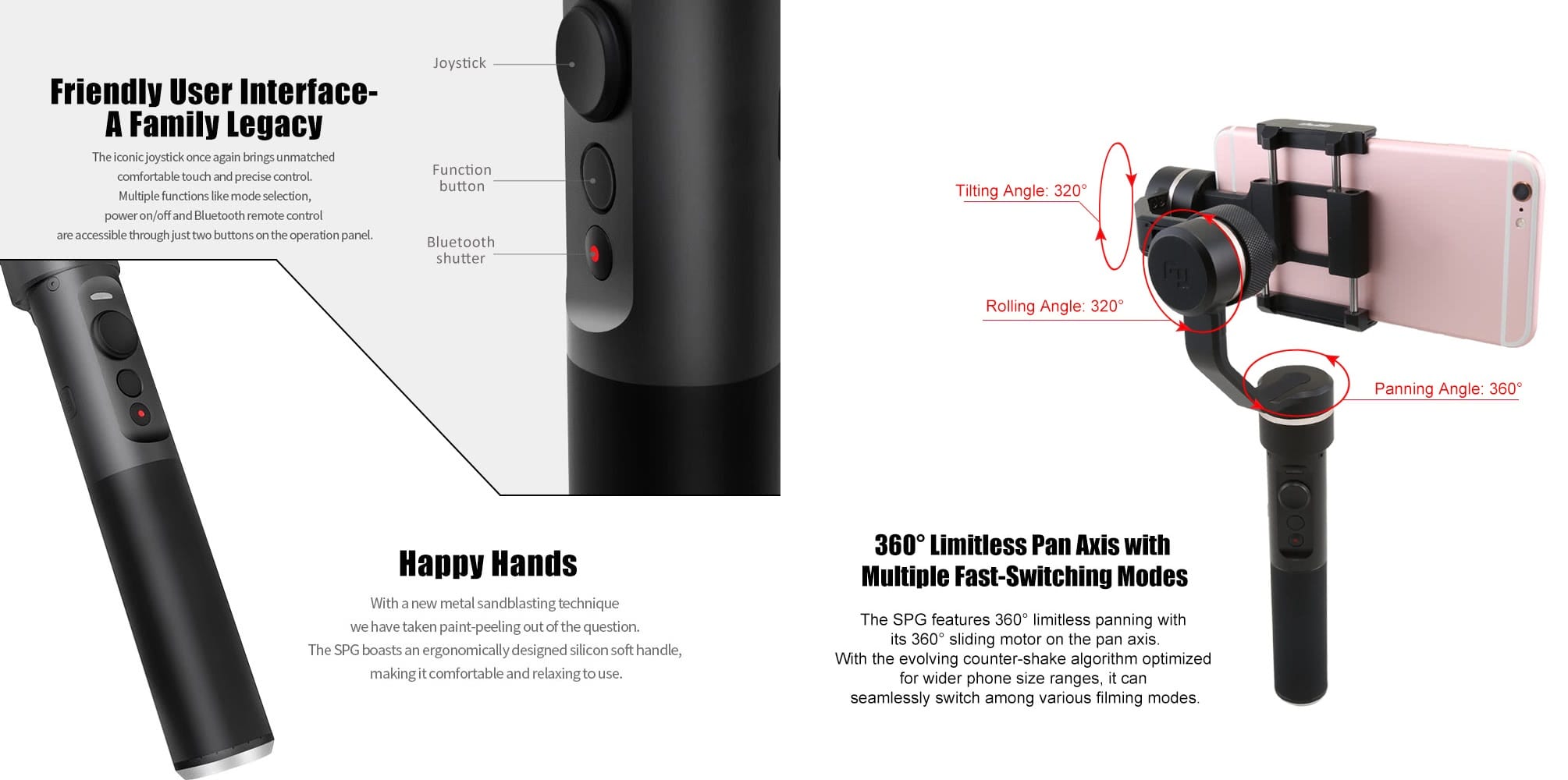 Specs of FeiyuTech SPG Handheld Gimbal