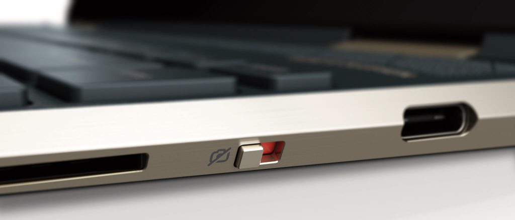 Security was also a priority while designing the laptop. It comes with the usual fingerprint reader, pre-installed TPM module, a SureView privacy display and a mechanical switch that disables the webcam electronically.