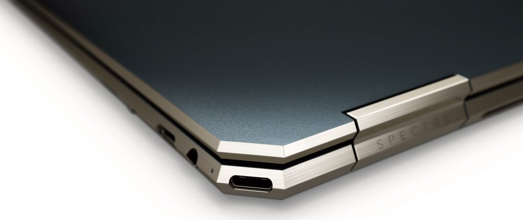 The HP Spectre 13 x360 comes in a much more angular and sharp design choice than before. A striking feature for me was the USB C port at the edge of the chassis [picture of it below]. If you put numbers to the context, the new laptop is now 14.5mm thick and 1.3Kgs heavy.