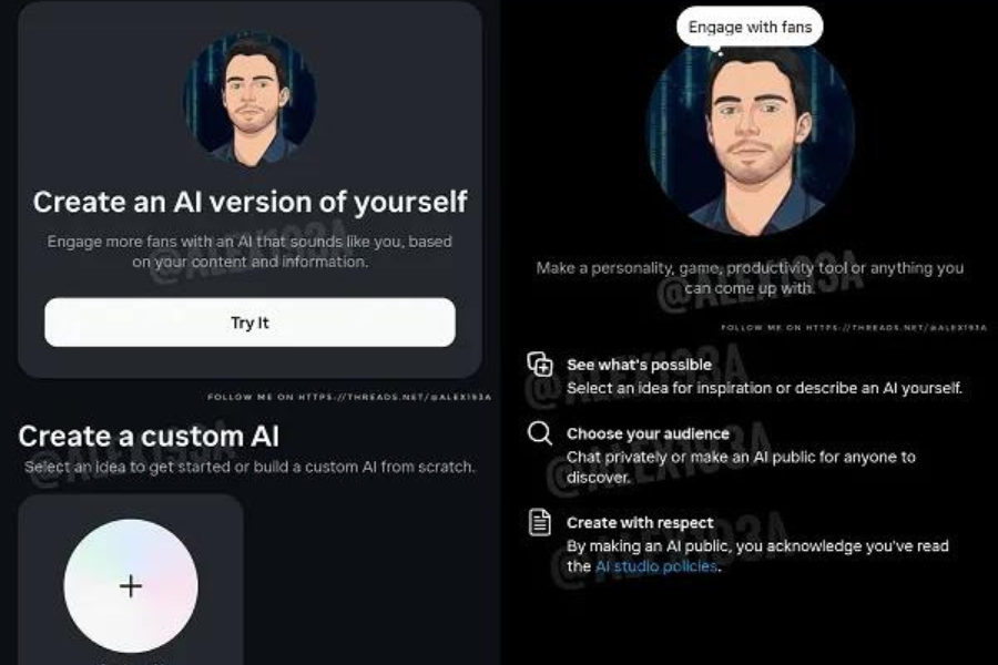 App researcher Alessandro Paluzzi has shared new screenshots revealing Instagram’s developing AI bot creation framework. This includes a feature for users to 'Create an AI version of yourself.