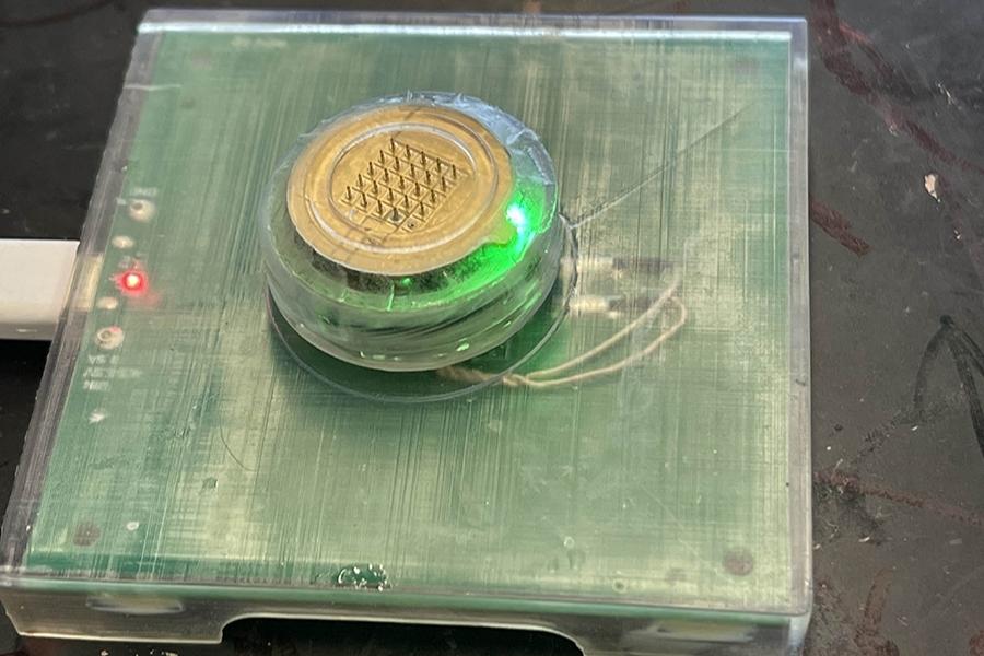 Wireless charging demonstration of the wearable (Image Source: UCSD)