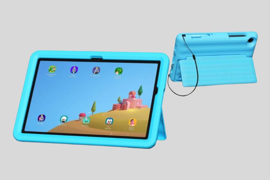 The Samsung Galaxy Tab A9+ Kids Edition is mostly the same old goodie. However, you do get some things extra. Starting with the thick puffed cover with a built-in kickstand. This case is similar to the ones you get with other kids' tablets and is available in multiple colours including Blue, Red, and Yellow.