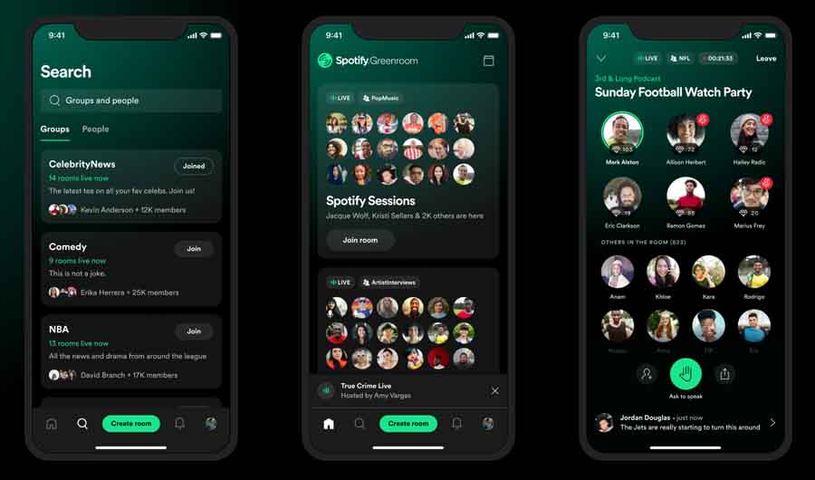 Greenroom is a separate app from Spotify, where you can participate in live discussions about music, artists, and topic of your choice. It is available for both Android and iOS users.