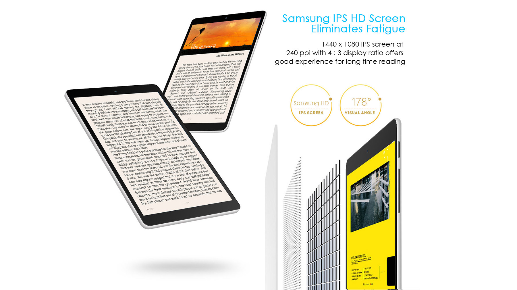 What's unique about the Teclast X89 is its ability to boot into either Android 4.4 or Windows 10. The tablet ships with USB OTG connector, so you can connect it to an external keyboard. Connectivity wise, it comes with microUSB port, HDMI port, and a 3.5mm headphone jack. It has WiFi b/g/n, Bluetooth 4.0, but lacks SIM card slot which basically means you cannot use mobile data. Powering the phone is a 3500mAh non-removable battery. It’s weighs 318 gram and has 8.9mm thickness. We recommend the Teclast X89 for those who are looking for an ebook reader on a cheap.