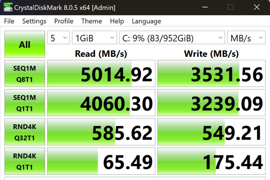 In terms of memory, you are getting 16GB of fast RAM (7467 MT/s) and a 1 terabyte Gen 4 SSD with a pretty good read (~5000 MB/s) and write speeds (~3500 MB/s). Being an ultrabook, almost everything is soldered down and there's almost no room for upgrades.