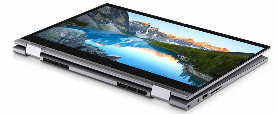 Like I mentioned earlier, the Dell Inspiron 14 5406 is a 2-in-1 laptop, meaning it can be transformed into a tablet at a moment's notice. It features a metal lid while the rest of the body is made from plastic. It is available in two color options – Platinum Silver and Titan Gray. Here, the Titan Gray variant is ever so slightly thinner and lighter than the Platinum Silver model. Its 360-degree hinge allows you to use the laptop in multiple modes including Tent mode, Stand mode, and Stand mode.
