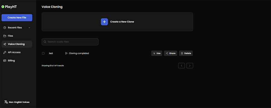 Select the "Voice Cloning" tab on your left and click "Create a New Clone"