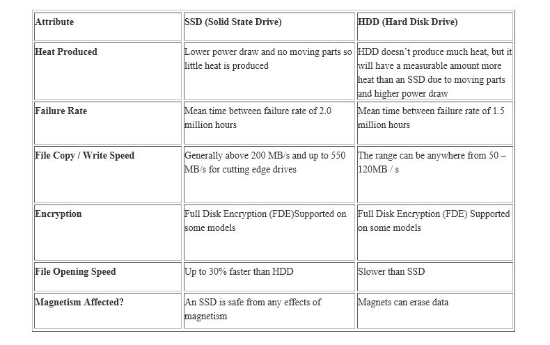 Durability Test: (Vibration Resistant Test): Since HDD drives have a magnetic disk attached to it has less capability to resist the vibration shock. The HDD-based notebooks fail to respond approximately at around 350 Hz whereas the SSD fails after the average of 5 times more.
