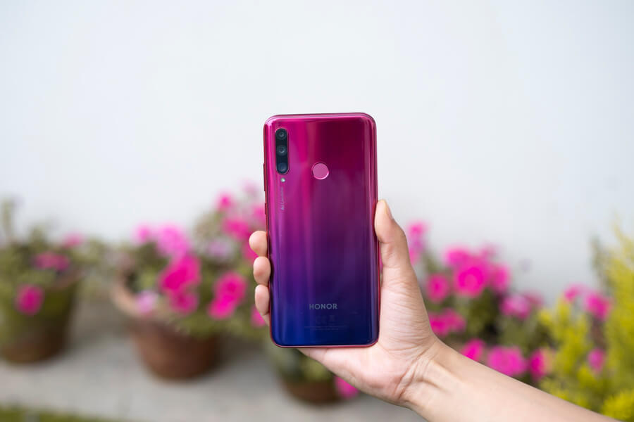 Like with the previous Honor smartphones, the 20 lite features a gradient color back. The one I have right now is a phantom red color which looks pleasing. One thing you need to know is the back is made of plastic, and not glass which is the reason it feels light on hands.