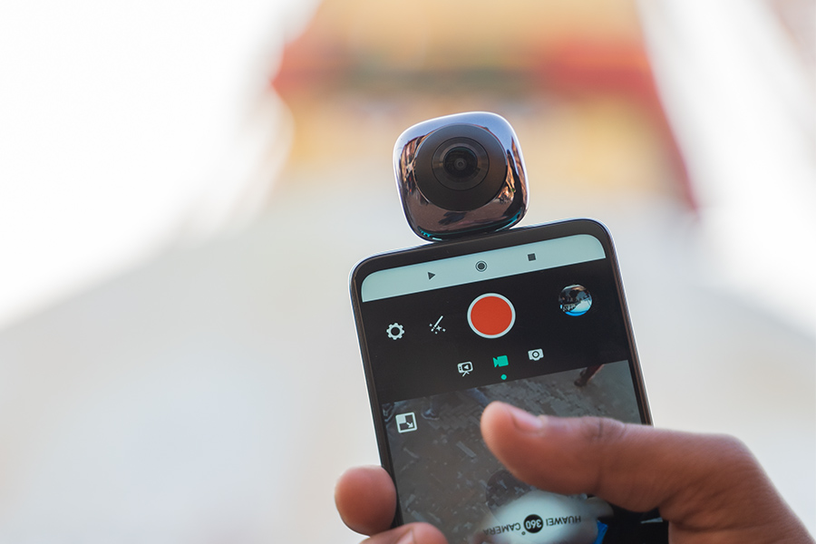 As mentioned before, the Huawei EnVizion 360 has a 13MP camera lens with an f/1.8 aperture lens on both sides. It uses Sony’s image sensor and an I-CATCH V35 image processor. For image resolution, it has two options: 5376 x 2688 pixels and 3840 x 1920 pixels. But as you can tell, the cameras are not only for taking still images. It is capable of taking a 360-degree view video with a maximum resolution of 1920 x 960 pixels and also of 1280 x 640 pixels, both at 30fps. What’s more, you’ll need to install the Huawei 360 Camera app from the Play Store, and thus doesn’t support your phone’s native camera app. This app initializes the camera and provides plenty of options that you can use as per your requirement.