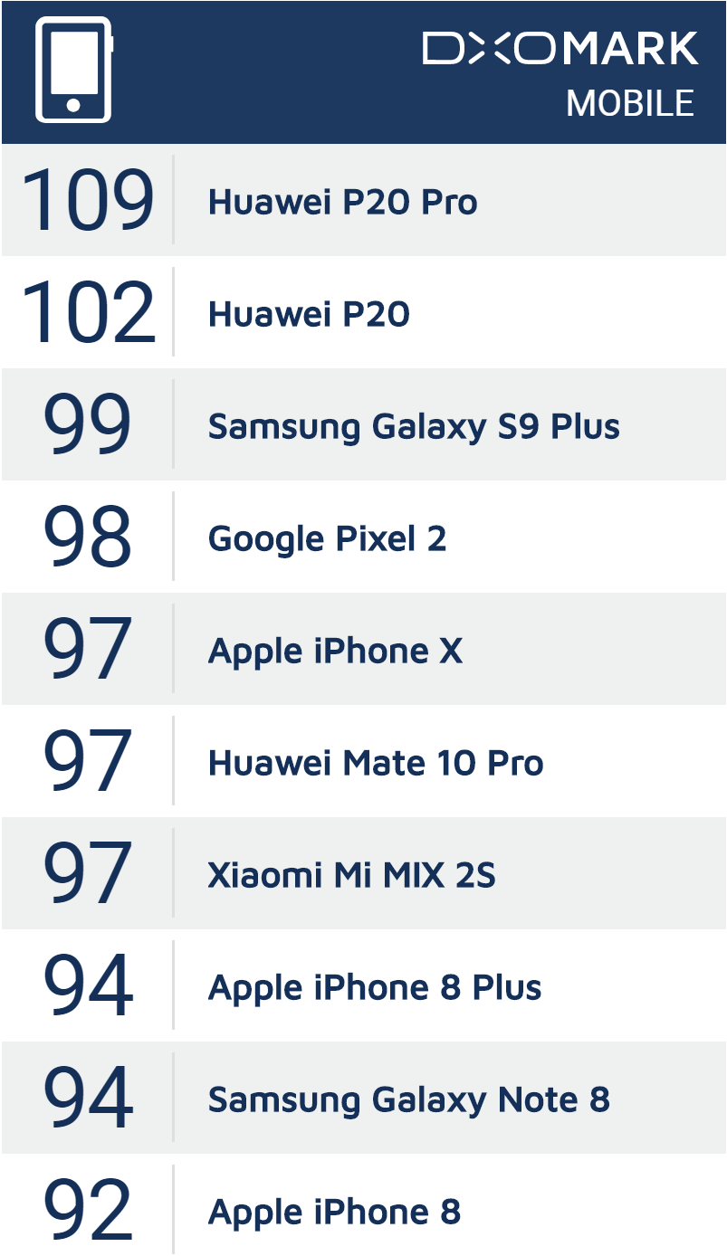 The newly launched Huawei P20 and P20 Plus score the highest ever rating on DxO Mark for a smartphone. The P20 Plus is on the top of the list with the score of 109 and only second to that is the Huawei P20 with the score of 102. Samsung Galaxy S9 Plus (99), Pixel 2XL (98), and the iPhone X (97) are on the list respectively right after the P20's.