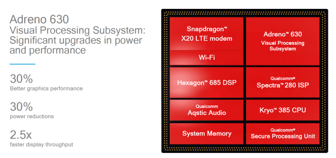 The graphics department will be handled by the new Adreno 630 which will deliver up to 30% improvements in graphics as well as 30% reduction in power consumptions over the last generation.