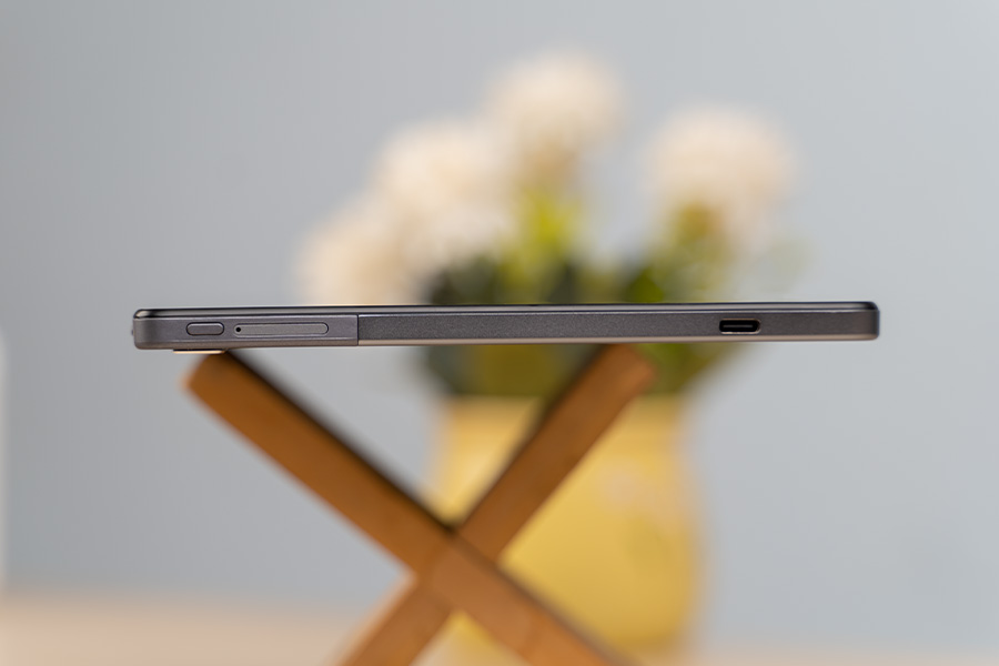 Anyway, let’s now focus on the design. The Kingpad M10 is a sleek device with squared-off edges and 7.62mm of thickness that weighs 450 grams. While the company claims to have a full metal body design, the back panel does have a plastic-made portion that catches fingerprints rather easily.