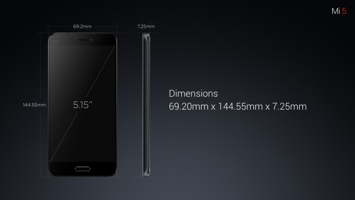 The design of Mi 5 is elegant to look at. It's 7.3mm thin which might not be the thinnest still the curved edges on the back should make it pretty easy to handle. it weighs at just 129g which is very impressive comparing with an iPhone 6s weighing 143g and iPhone 6s plus weighing at 192g and Samsung S7 weighing at 152g.