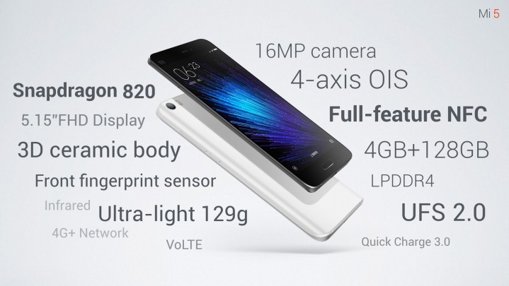 In terms of hardware, the Xiaomi Mi5 is powered by the latest Snapdragon 820 CPU-- the latest processor from the Qualcomm which is also powering other handsets such as LG G5 and Galaxy S7, coupled with 3/4GB of LPDDR4 RAM. According to the company, the Snapdragon 820 CPU is twice as fast, and 50% more power efficient than last years Snapdragon 810 CPU. Also, the Adreno 530 GPU that’s embedded inside the SD 820 will offer 40% increase in graphics than the SD 810. For the first time, Xiaomi has also opted for UFS 2.0 storage option instead of traditional eMMC 5.0, resulting in 87% faster data transmission.