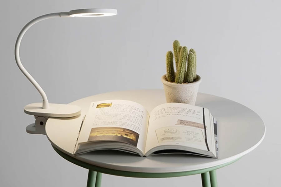 Clamp Lamp J1 is a table lamp that can also be clamped to any surface with a thickness between 15 - 45mm. It comes with three different color modes - Casual, Learning, and Night mode. The light is brightest in casual mode. In learning mode, it is dimmer but you can still read books under it. The light is the dimmest in night mode, and can only be used as a nightlight. The arm of the light is made up of silicone and can be bent up to 360-degree. Its 1500mAh battery can last up to 14 hours.